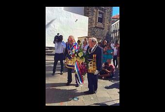 En el corazón de la Masonería sólo había esta semana lugar para la alegría por este reencuentro con la isla. Sobre la estatua del padre Díaz, el primer gesto de una Logia que regresa a su casa, tres coronas de flores en nombre de la Gran Logia de España, la Gran Logia Provincial de Canarias y la Respetable Logia Abora.