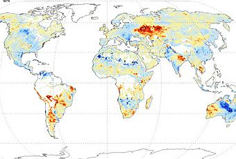 La Agencia Espacial Europea (ESA) presentó recientemente el primer catálogo global de datos sobre la humedad del suelo correspondientes al periodo 1978-2010. El agua almacenada en el terreno juega un papel muy importante en el sistema climático; por ejemplo, según estudios recientes el descenso de la tasa global de evaporación podría estar causado por un menor contenido. (click en imagen para ampliar) Fuentes:ESA || Ambientum