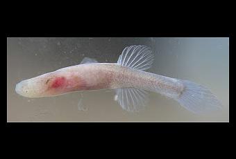 Figure 1. Typhlichthys subterraneus collected 25 November 2015 from Crane Cave (GCZ80), Catoosa County, Georgia. Photograph by B.R. Kuhajda.Se trata del pez Typhlichthys subterraneus, un bonito ejemplar ciego de aguas subterránea. Este trabajo también se puede ver completo en la web de la revista, en el siguiente enlace: