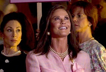 Esta no es una foto oficial como la de Tom Cruise, pero tampoco está mal. Podemos ver a la actriz vestida en total pink, vamos, de rosa, muy bien puesta y encabezando una manifestación con cartelito incluido.