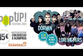 Nuevo festival que añadir a nuestro mapa veraniego, durante el 4, 5 y 6 de Julio tendrá lugar la primera edición del Pop Up! Festival. En la playa de Razo en Carballo (A Coruña), se celebrará tres jornadas inolvidables cuyo eje central serán la música, el surf y tú. De momento ya se conocen las primeras confirmaciones, Dorian, Pull My Strings y Lori Meyers animarán la nocturnidad playera con su actuaciones.