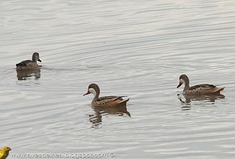 Miren la sorpresa con que me encontré hoy en el Arroyo Mártires a metros del puente sobre la Av Quaranta (Ruta 12), sería creo yo el primer registro documentado del Pato gargantilla para la Ciudad de Posadas y para la provincia de Misiones; a veces no hay que alejarse mucho de casa para encontrar cosas interesantes, en las fotografías pueden observar a dos especies, el Pato Gargantilla (el de cara y garganta blanca) y los otros dos son Pato cutirí (Amazonetta brasiliensis); habían dos grupos grandes de patos nadando en las aguas someras de esta parte del nuevo cauce del arroyo, en total habrían unas 40 aves, obviamente concentré mi atención en el grupo mas cercano ni bien me percaté del detalle de la cara blanca, habían mas individuos en el grupo que estaba mas alejado a unos 100 metros de distancia, espero sepan disculpar la mediocre calidad de las fotos, no puedo hacer mucho con las condiciones de luz de un día nublado pero esto sirve perfectamente como registro. También estaban presentes en gran cantidad los Teros reales a los que también les dediqué algunas fotos esta tarde.