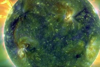 Disco solar con múltiples longitudes de onda en el rango del ultravioleta extremo. La imagen fue tomada por el SDO el 30 de marzo pasado. Los falsos colores indican distintas temperaturas en el plasma. Crédito: NASADebido a que las tormentas solares pueden perturbar las tecnologías humanas, es importante saber cuándo podemos esperar un episodio grave que podría dejar fuera de combate a la red eléctrica, por ejemplo.