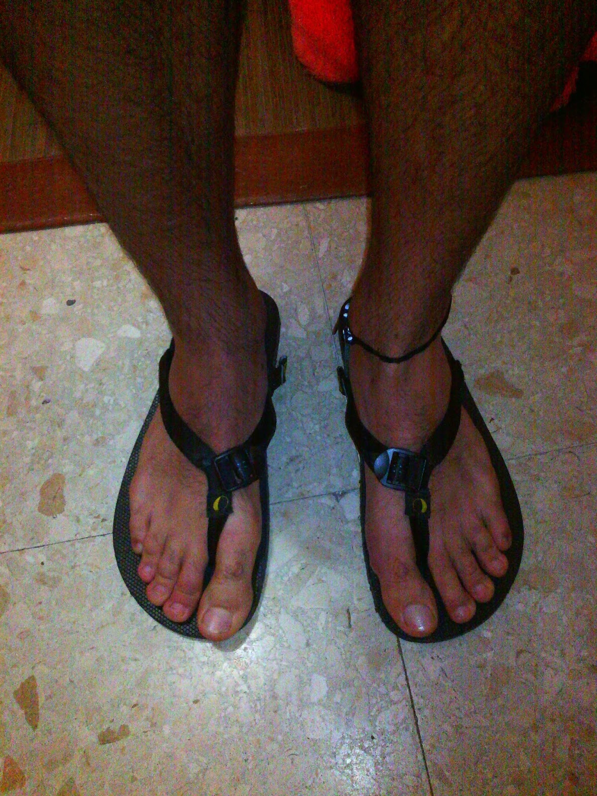No obstante nunca hay que fiarse de la primera impresión, y tras probarlas sobre asfalto, arena, tierra, senderos y en campo a través, en poco más de medio centenar de kilómetros (cada día con un ajuste sensiblemente diferente al anterior) he conseguido sujetar el pie con firmeza sin dejar los pulgares "asomando", y gracias a que los huaraches están comenzando a amoldarse al pie (pienso que así debe ser, si es el pie el que se amolda al calzado podemos acabar arrepintiéndonos...), la sensación con ellos es cada vez mejor.