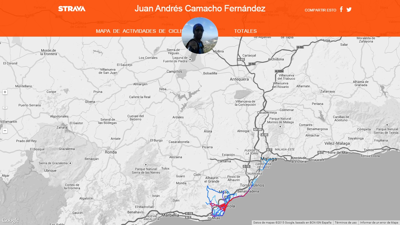 Estos serían, por ejemplo, mis mapas de carrera a pie y ciclismo en la provincia de Málaga desde el pasado año: