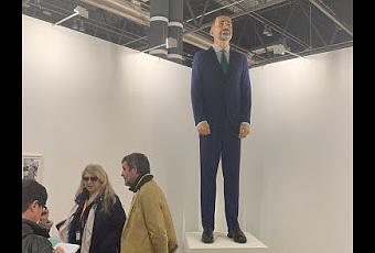 Entre las obras de este año en el Arco, el Ninot de más de cuatro metros, perfumado con la fragancia Dark blue de Hugo Boss “porque es el perfume que usa el monarca”, y de la que “solo quedará la calavera” tras arder por contrato en un año. Una obra de Santiago Sierra, en colaboración con Eugenio Merino, albergada por la galería italiana Prometeo. Pero ¿quién diablos querrá comprar el ninot de 200.000 euros si, dentro de un año, estará obligado a destruirlo? (Solo quedará la calavera) Y sin embargo, se dice que ya tiene a varios compradores del extranjero. Su autor es el mismo artista que presentara la escultura de cera de Franco congelada. “ARCO -ha lamentado el artista, quien considera que en España seguirá habiendo casos porque está en su ADN - va a iniciar una nueva etapa, hay un cambio de dirección y estar aquí de nuevo es un gesto agradable hacia mí, me parece bien”. Santiago Sierra y Eugenio Merino vuelven a ARCO con un 'ninot' gigante del Rey de más de cuatro metros que arderá en un año. Merino, el artista que colabora con Sierra en 'Ninot', también causó polémica en 2012 con la obra 'Always Franco', en la que una escultura hiperrealista de cera del dictador aparecía metida en una máquina de refrescos.