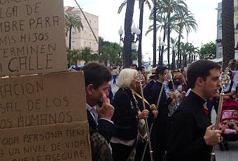 Pasa la carreta, palmas, sevillanas rocieras, mucha devoción, mucha alegría...hasta bailan y cantan los hermanos y hermanas en la puerta de Ayuntamiento. Pero ninguno, pero ninguna se acerca a dar ánimos, a preguntar que tal esta, a la persona que esta en la puerta, en huelga de hambre, pidiendo una vivienda digna.