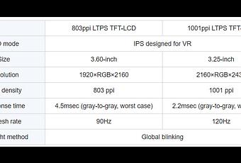 El nuevo panel 1001ppi LTPS TFT LCD creado por JDI no solo presenta una alta densidad de píxeles, sino que también mejora el tiempo de respuesta de los LC de 4.5 mseg a 2.2 mseg (gris a gris, en el peor caso), lo que ayuda a reducir el desenfoque de movimiento. Además de estas características, el 1001ppi LTPS TFT LCD es capaz de operar a una frecuencia de actualización de 120Hz, aunque la mayoría de las pantallas para aplicaciones VR-HMD operan por debajo de los 90Hz. Esta frecuencia de actualización de 120Hz ayuda a minimizar la latencia del sistema.