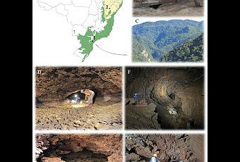 Figure 1. Areias cave system (F, G) in the Atlantic Rain Forest (C) and Toca do Gonçalo Cave (A, D, E) in Caatinga (B). Photos F and G by Daniel Menin.En este trabajo se citan dos puntos calientes (hotspots) de biología subterránea de Sudamérica, concretamente de Brasil. Podéis descargar el trabajo en el siguiente enlace, ya que afortunadamente se encuentra de libre acceso en la web de la revista: