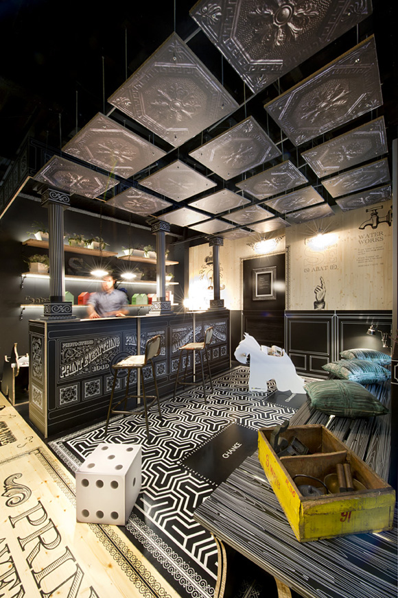 Este stand de Sabaté, que pudimos encontrar en Casa Decor nos introduce a la reproducción interior de una vivienda en la que gracias a las diferentes texturas e impresiones retro, se van construyendo los espacios.Todo ideado por el estudio egue&seta, aquí su interesante descripción del proyecto: