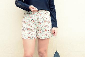 Cuando vi estos pantalones me gustaron por el corte alto que tenían y porque los vi muy dulces, con el color rosa pastel tan suave y un estampado de flores muy sutil y apenas imperceptible. Se me ocurrían varios looks con ellos, pero sinceramente todo rosa no iba a ser mi primera opción. Me gustan los looks soft pero con un límite, así que el rollo todo rosa estilo muñeca no iba conmigo. Opté por tanto por jugar con un básico, el negro. Este color nunca falla. Escogí una blusa negra con detalle de encaje en las mangas que a mi parecer queda muy bien con los shorts. Al ser la blusa lisa y en negro resalta aún más el short, además éstos llevan estampados unas pequeñas motitas en negro con lo cual existe una armonía de colores en el look. ¿Qué opináis de los looks en tonos suaves? ¿Cómo os hubiese gustado más todo rosa o con el negro?
