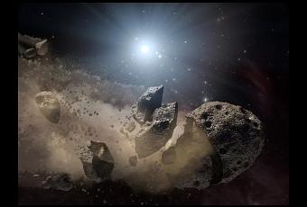 Ilustración artística de la fragmentación de un asteroide. Crédito: NASA/JPL-Caltech.