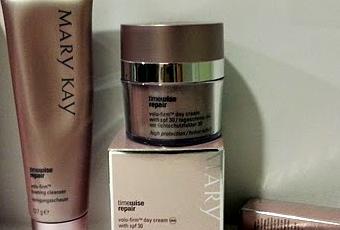 Limpiador, crema y rellenador antiarrugas de la línea TimeWise Repair Volu-Firm de Mary kay