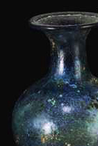 Unguentario de vidrio romano azul cobalto. El óxido de cobalto lo cita Cavanilles en algunos pueblos de la Sierra de Espadán, en Castellón, en las areniscas triásicas. Señala su presencia en los montes de Ayodar y Pavias , y mucho mas en Eslida. Hierro, cobre y cinabrio acompañan estas mineralizaciones. Escuterudita.El cobalto está presente en minerales como la eritrina, la cobaltocalcita, la asbolana o la escuterudita. Estas menas cobaltíferas no servían como menas metálicas. Los primeros intentos de fundirlas para obtener metales fracasaban dando en su lugar sólo óxido de cobalto en polvo, y además este proceso era tóxico por el contenido en arsénico.Cobaltocalcita.Las producciones de Manises están ligadas a estas minas, y el óxido de cobalto extraído se destinaba íntegramente a ellas. Junto a las produciones monocromas en cobalto, fundamentalmente azulejería, para las vajillas de mesa se especializaron los talleres maniseros en las lozas doradas, que combinaban los perfilados cobalto con rellenos y decoraciones lineales en cobre obtenido por reducción en tercera cocción (bizcochado, aplicación de baño estannífero y pintura cobalto, y antes de la tercera, reductora, pintura con óxido de cobre).Loza dorada de Manises.Ladrillos pintados en verde de cobre, morado de manganeso y melados de óxido de hierro, inspirados en las producciones andalusíes de Mertola.Cronológicamente, a las producciones azulejeras de Paterna y Manises en verde y morado (cobre y manganeso sobre fondo de blanco de estaño), con representaciones de plantas estereotipadas y animales, propias de finales del s.XIII y XIV, siguieron los azulejospintados en azul de cobalto y reflejo metálico. Ello supuso la innovación técnica valenciana más destacable.Motivo de la azulejería de Paterna, siglo XV. Oxido de cobalto sobre esmalte estannífero.Bizcochado, baño de esmalte en crudo y pintura con óxido de cobalto.Cocido el esmalte decorado con cobalto, aplicación de lustre de cobre.Loza dorada y azul gótica. Manises y Paterna produjeron masivamente azulejos decorados con este pigmento. La base decorativa de estas producciones es siempre el esmalte estannífero, utilizándose como pigmentos los óxidos de cobalto, manganeso, a veces el cobre en oxidación y el reflejo metálico. Los motivos decorativos muestran influencia malagueña, tanto en azulejos como en los platos, cuencos y jarros de loza dorada o azul. elementos iconográficos geométricos y vegetales de raíz musulmana como los atauriques, las alafias, los árboles del Paraíso, los pavones, las piñas persas, las palmetas rayadas, así como vírgulas y retículas y las pequeñas espirales y paralelas .Cuencos y escudillas de loza dorada y azul.Por otra parte existen composiciones de pequeños azulejos que presentan los temas típicos de la loza azul contemporánea: flores de puntos o de perejil, zarcillos, epigrafías, estrellas y hojas rayadas. Los cardos, las clavellinas, los ramos con ejes en diagonal, las rosetas... son elementos que se van estereotipando buscando el poder rellenar la superficie blanca con elementos sencillos pero atractivos de ejecuciòn seriada, simétrica, combinables entre sí y adecuados al movimiento natural del pincel y la muñeca.Azul cobalto de Manises en una pieza del siglo XIX.Azul cobalto de Manises en una pieza del siglo XIX.