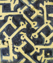 En los cuencos ejecutados como muestra se ha podido experimentar con la cualidad del óxido de cobalto para producir líneas de distinto espesor y rellenos. Los dorados se han ejecutado con la técnica contemporánea del lustre metálico, pintado y sometido a cocción posterior a una temperatura en torno a 740 grados. El uso del lustre plantea otros problemas al disolverse en base de trementina, lo que obliga a utilizar una densidad óptima porque o bien no corre el pincel o bien el exceso de diluyente corre la limpieza de las lineas al pintarse sobre un medio no absorbente, como es esmalte cocido.