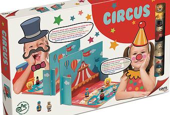 Tras comentar con ellos las edades de mis niños, que son bastante pequeños, descartamos algunas opciones por contener piezas demasiado pequeñas y finalmente me enviaron este juego de mesa, “Circus“, de la marca Cayro.