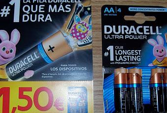 - 10 folletos con cupón descuento de 1,5 € en la compra de pilas Duracell Ultra Power.