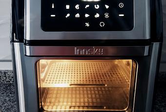 Y es que la Innsky no sólo es una freidora de aire caliente, sino también una parrilla, un deshidratador de frutas, un horno para pizzas y un horno eléctrico convencional. Con 10 programas preestablecidos y un amplio rango de temperatura de 80 °C a 200 °C en la que puedes asar, hornear, freír, deshidratar, descongelar, etc.