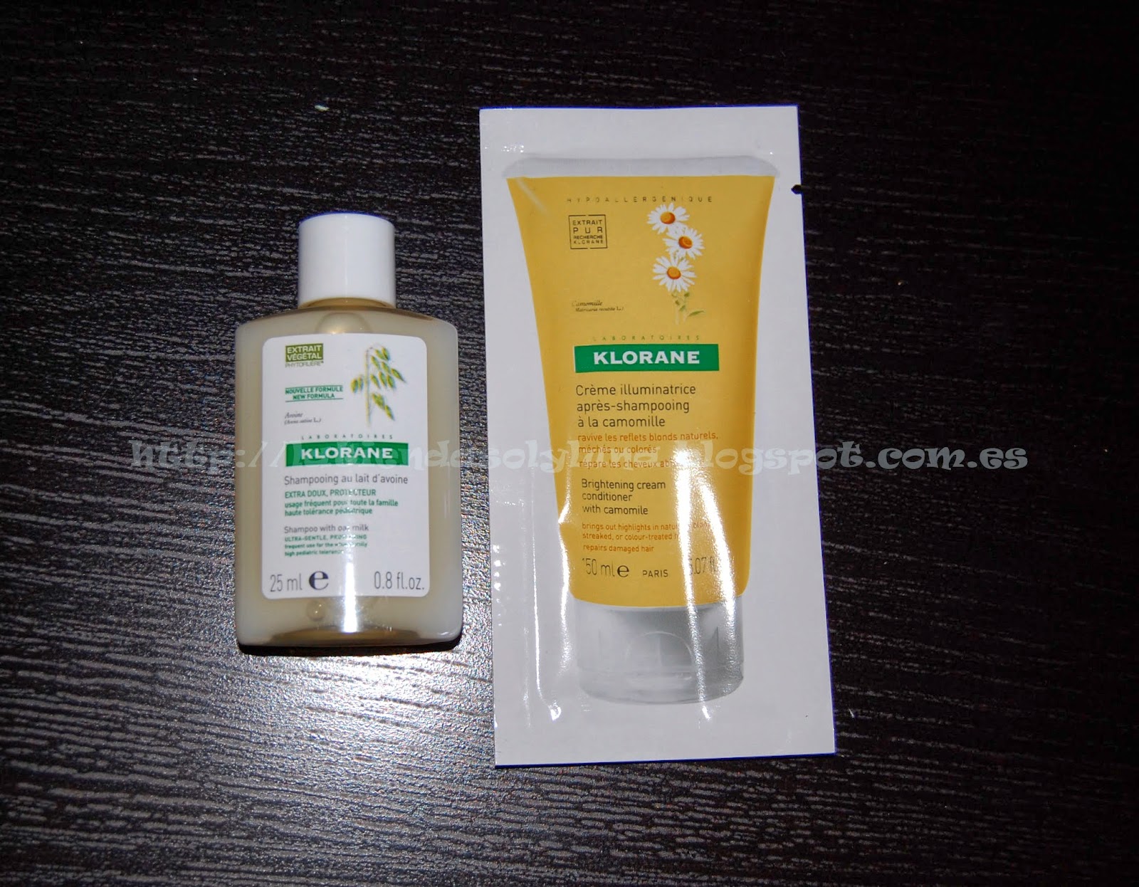Su precio: El tubo de 125 ml cuesta 10,47 euros.Los siguientes dos productos pertenecen a la línea del Dátil de Desierto indicada para cabellos secos, dañados y quebradizos. Son el champú tratante nutritivo y reparador, y la Crema de Día sin aclarado.El Champú lava con suavidad el pelo seco y quebradizo, proporcionando nutrición y reparando la fibra capilar. Ayuda a recobrar la elasticidad y la suavidad natural del cabello.Modo de empleo: Aplicar sobre todo el cabello, masajear y aclarar abundantemente con agua.Su precio: El frasco de 200 ml cuesta 8,21 euros.La Crema de Día nutre y repara las puntas de los cabellos secos y quebradizos. Envaina el cabello en toda su longitud sin apelmazarlo gracias a su fórmula sin siliconas y facilita el peinado.Modo de empleo: Se puede utilizar sobre el cabello seco o húmedo. Aplicar sobre todo el largo del cabello y sobre las puntas una cantidad similar al tamaño de 1-2 nueces. No aclarar. Peinar.Su precio: El tubo de 125 ml cuesta 10,47 euros.Y los últimos dos productos pertenecen a dos líneas diferentes: el champú es de la línea de la Leche de Avena indicada para el uso frecuente para toda la familia y la Crema Iluminadora es de la línea de Camomila indicada para el cabello rubio para conseguir unos reflejos dorados.El Champú es extra-suave y está indicado para todo tipo de cabellos. Puede usarse a diario. Su composición respeta el equilibrio del cabello a la vez que proporciona una eficaz limpieza con acabado brillante. Modo de empleo: Es un champú de uso diario. Aplicar sobre el cabello húmedo. Dejar actuar unos minutos y aclarar.Su precio: El frasco de 200 ml cuesta 8,21 euros y el frasco de 400 ml cuesta 13,56 euros.Respecto a la camomila, su extracto proporciona unos reflejos rubios naturales. La línea de camomila está indicada para el cabello rubio o castaño claro.La Crema Iluminadora mantiene el brillo natural de los cabellos claros naturales, con mechas o con color, y facilita el peinado, a la vez que le otorga brillo y flexibilidad.Modo de empleo: Aplicar después del champú, sobre el pelo aclarado y escurrido. Dejar actuar 2-3 minutos y aclarar abundantemente.Su precio: El tubo de 150 ml cuesta 9,65 euros.Mi opiniónPues para empezar, mi pelo es graso en el cuero cabelludo y muy seco y quebradizo de mitad a puntas. Así que estos productos son adecuados a mi tipo de cabello en parte claro…. El que más se adapta a mi cabello, es el champú del Dátil de Desierto, ya que está indicado para el pelo seco, dañado y quebradizo. Deja el pelo muy suave y agradable al tacto. No lo enreda. Después de lavar y secar el pelo, lo deja bonito y suelto. Aporta mucha nutrición al cabello.El champú de la Leche de Papiro también se adapta de algún modo a mi tipo de cabello ya que es un champú que ayuda a alisar el pelo. Sí, que me lo deja algo más liso, suelto y muy suave. No me gusta mucho el olor, pero es cosa mía ya que no me gustan mucho los olores a hierbas,…. Es un olor fresco y limpio.El champú de la Leche de Avena es un champú muy suave y alivia el cuero cabelludo irritado. No apelmaza el pelo y no me lo engrasa. Me deja el pelo limpio aunque un poco enredado. Respecto a las cremas, no me gustan las cremas sin aclarado ya que mi cabello es muy fino y suelen dejarlo apelmazado. Las he utilizado como mascarillas y después he aclarado bien el cabello y me ha gustado el resultado, dejan el pelo suave al tacto.Conocíais los productos KLORANE? ¿Habéis probado alguno de estos productos?