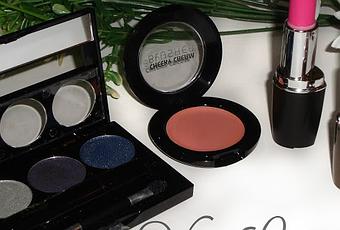 Compré los productos que véis en la foto : un trio de sombras, un colorete en crema y dos labiales de diferentes acabados, uno mate y otro satinado .