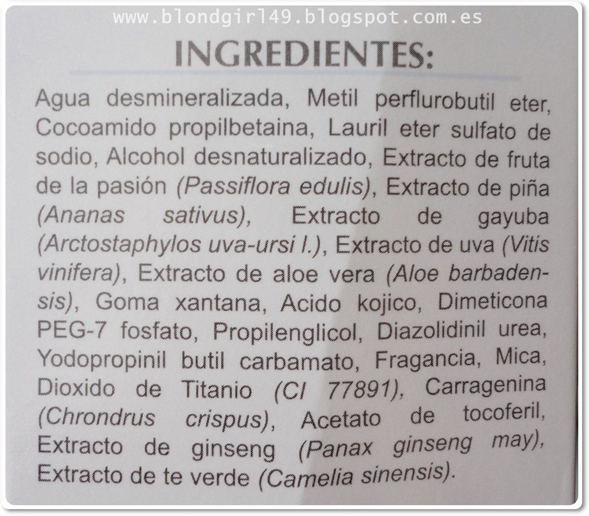 Y también os quiero dejar con los ingredientes por si queréis consultarlos: