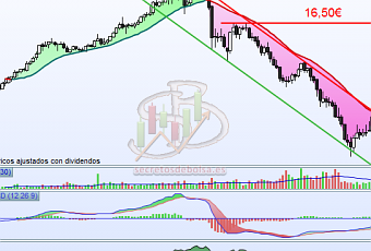 Mientras, en gráfico semanal el precio a medida que iba ascendiendo iba rompiendo resistencias que dejaba atrás en su camino. En este ascenso el volumen tomó una parte importante ya que que iba aumentando en la escalada con una gran fuerza. Sin embargo tras alcanzar los 6,50€ el valor comenzó a debilitarse lentamente aunque el precio continuó con su subida, más moderada si cabe.