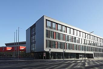 En una segunda fase se construirá el edificio de oficinas de cuatro pisos. La nueva estructura se corresponde con el estándar KfW 40: un sistema de bomba de calor con pilas termo activas para calefacción y la refrigeración que contribuyen a la eficiencia energética.