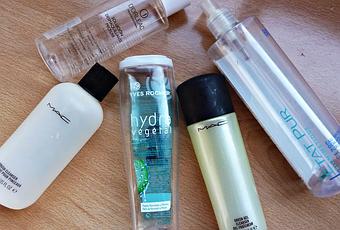 1. Agua micelar de D´Orleac2. Agua micelar B02 de Etar Pur3. Agua micelar Hydra Vegetal de Yves Rocher4. Green gel cleanser de MAC (gel sin jabón para el rostro)5. Brush cleanser de MAC (limpiabrochas)