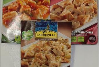 La empresa Carretilla tuvo la gentileza de hacerme llegar tres platos preparados de pollo para que pudiéramos probarlos. Entre ellos había pollo a la cazuela con pimientos, pollo al ajillo con patatas asadas y pollo con champiñones.