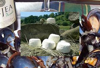 Comparten en este plato el dulzor de los higos cocidos con azucar (especie de almibar) y el queso fresco con su suave y cremoso sabor cerrando todo ello jamon serano de Teruel o una cecina de vaca curada con un chorro de aceite de oliva y cortado en virutas.