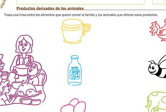 Ficha de ciencia y ambiente para educación infantil 3 años: Productos derivados de los animales