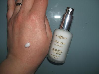 Es una crema muy ligerita con un aroma muy agradable, que se presenta en un envase con dosificador de 30 ml de cantidad. Lo que no me ha gustado es que no lleva tapón, aunque guarda muy bien el producto y lo conserva bastante bien.