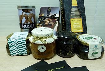 El lunes me llegaron unos productos gourmet de http://www.degustam.com/. Un lote variadito que incluía unos bombones belgas, crackers de ceps, algas al natural, tartar de algas de las Rías Baixas, mayonesa de tomate deshidratado, chocolate a la taza sin azúcar y Gelée de vino Pedro Ximenez para acompañar carnes y quesos curados.
