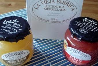 En mi casa, hace tiempo que no se consume otra mermelada que no sea de La Vieja Fábrica (excepto las caseras, claro), y hace unos días me enviaron unas muestras de sus nuevas mermeladas. En este caso, de cabello de ángel y de tomate. En cuanto prepare una receta con cada una de ellas, os informaré. Gracias por el envío!