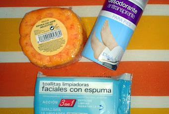 El otro día fui a Mercadona porque necesitaba un desodorante para los pies, porque al ir a correr y en bicicleta suda el pie y la zapatilla huele y me gusta utilizar un desodorante y este de Mercadona me va muy bien, deja un olor fresco que me gusta!Dando la vuelta por la sección de Perfumería me encontré con una esponja de jabón natural, al principio pensaba que era una pastilla de jabón porque es bastante dura, pero es una esponja!..hay diferentes olores, de coco, de melocotón, frescor marino..su precio unos 2 euros. Ahora que la he utilizado os puedo decir que esta bien, pero tampoco es estupenda, pensaba que al mojarla se pondría más tierna y haría bastante espuma y la verdad es que cuesta que se ponga blandita y además no da mucho jabón. Si que cuando la utilizas huele a melocotón (que es la que compré yo), pero no dura mucho la olor y además es dura al frotar, puede servir como un exfoliante!Y finalmente encontré estas toallitas con jabón por 0'99 céntimos y me llamaron la atención, porque me parecieron muy prácticas. Mojas la toallita con un poco de agua y da mucho jabón, va muy bien para cuando nos vamos de viaje, por eso la compré para probar a ver que tal iba y utilizarla durante mis vacaciones. Me han gustado bastante, porque dan mucho jabón y eliminan bastante bien el maquillaje, pero como os digo para utilizar temporalmente!¿ Utilizáis desodorante de pies en verano?¿habéis visto las esponjas de jabón de Mercadona?¿conocías las toallitas faciales con espuma?un beso gracias ;)