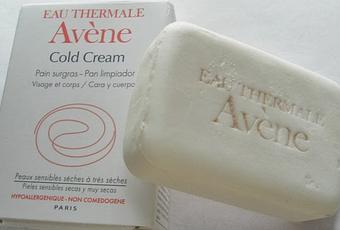 El Pan limpiador Cold Cream de Avene 100g: Se trata de una pastilla de jabón que limpia y nutre las pieles sensibles, secas y muy secas. Tiene propiedades sobreengrasantes y suavizantes además de agua thermal de Avène con propiedades calmantes y suavizantes. Es hipoalergénica y no comedogénica.