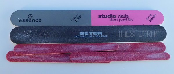 Son las que os enseño de color rojo y son lo más malo que he probado en mi vida, con decir que tengo que usar una para cada mano porque como limes un poquito ya se ha quitado el granulado.Creo que era un pack de 20 limas pero no las volveré a comprar.LIMA ESSENCE STUDIO NAILS 4 IN 1La compre para mi madre porque yo no suelo usar limas de cuatro pasos, las hay mucho mejores ya que la parte de limar se gasto enseguida. No la volveré a comprar tampoco.