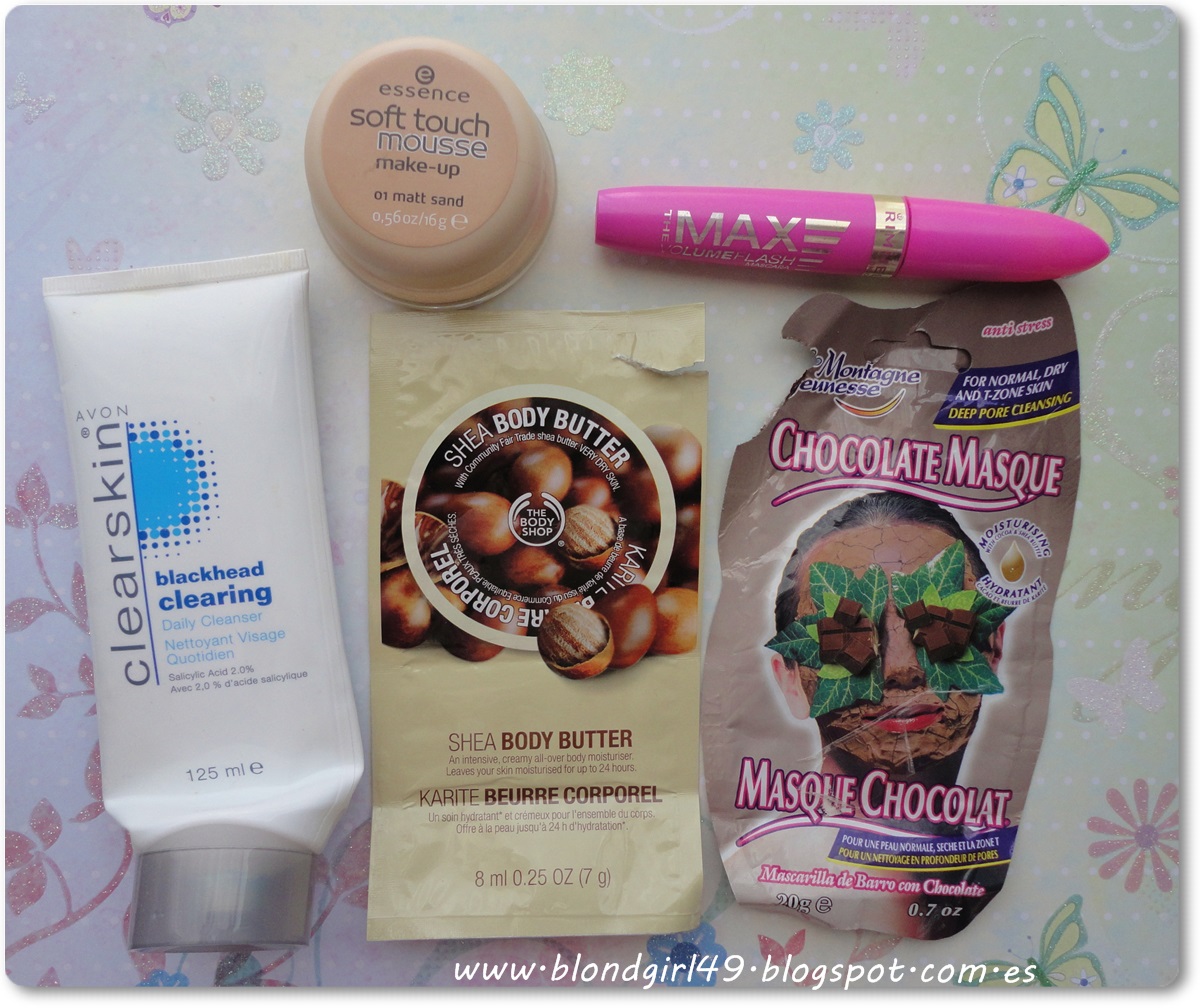 *MÁSCARA DE PESTAÑAS VOLUMEFLASH DE RIMMEL LONDON*Esta máscara de pestañas me la compró mi madre hace bastante tiempo, yo la verdad no la hubiera comprado porque las veces que he usado productos de esta marca no me han gustado demasiado, no digo que sean malos pero tampoco me han ido demasiado bien. El caso es que al final ha llegado a ser una de mis máscaras preferidas, me cómo me deja las pestañas. No me hace milagros pero al menos no me las apelmaza (porque tengo poca cantidad) y no me caen residuos a lo largo del día. Como se me ha acabado lo poquísimo que quedaba se ha espesado y los pelitos de goubillón han quedado deformados, por eso no os enseño la forma que tiene porque no es la original xDDDLo bueno es que ahora que la he acabado mi madre me ha comprado un montón más para que vaya probando jajaja y eso que le he dicho muchas veces que no me gusta tener muchas abiertas porque se secan jajaja, pero bueno las voy guardando para cuando acabe las que tengo ahora en marcha^^En mercadona creo que las venden a unos 6€ aproximadamenteSi queréis verla en acción os dejo aquí un enlace a un look en el que se ven bien las pestañas, tengo muchos otros pero al menos os dejo uno enlazado para que no tengáis que buscar.*CHOCOLATE MASQUE DE MONTAGNE JEUNESSE*Se trata de una mascarilla facial de barro con chocolate, pone que nutre la piel y que es apta para pieles sensibles (aunque pone que hay que hacer el test de compatibilidad en el brazo antes por si nos hace reacción en la piel). Se aplica por todo el rostro evitando labios y el contorno de los ojos, se deja durante 10-15 minutos y luego se retira con agua tibia. Con el paso del tiempo se nota como se va secando sobre la piel, yo iba notando que me picaba un poco por la zona de la frente pero también me pasa con las mascarillas de arcilla que me hago jeje. Se retira muy bien el agua y se nota la piel muy relajada. Me deja una sensación muy similar a la de la arcilla, pero esta tiene el añadido de que huele que alimenta a chcocolate y te dan ganas de comerte la mascarilla jajajaLleva 20gr así que da para varios usos (yo le di 3 ó 4!!)