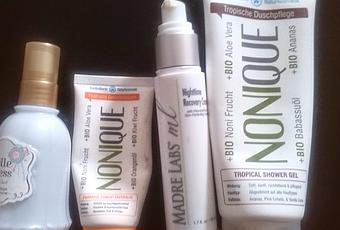 - Gel de ducha tropical, Nonique: Al hablaros del bálsamo facial ya os he adelantado que los productos que he podido probar de esta marca no me han gustado. Este gel de ducha es bastante denso, pero se necesita usar bastante cantidad, por lo que no cunde demasiado. Tampoco me ha parecido que su aroma o sensación de limpieza sean ninguna maravilla, me ha dejado bastante fría.