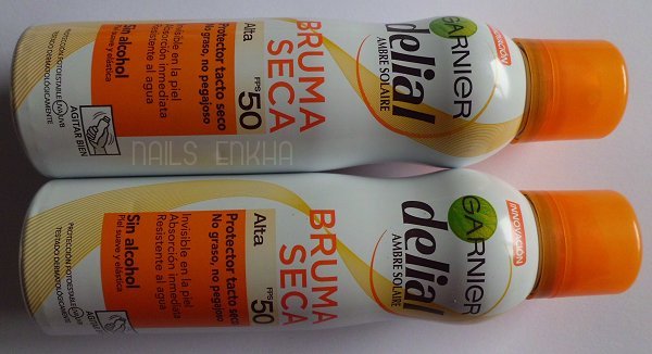 Contiene un extracto natural que ayuda a la producción de melanina.No es pegajosa, pero no me gusta si unas me dejan la cara blanca esta amarilla y con respecto a lo que ayude a broncear yo no he notado diferencia alguna.GARNIER DELIAL BRUMA SECA FPS50Tacto sexo, no graso y no pegajosa, lo de invisible a la piel hay que tener cuidado sino esta bien batida o si te la echas muy de cerca porque sino igual se queda blanca. Sin alcohol, se absorbe muy bien, deja la piel suave y elástica. Contiene 200ml y protege UVB y UVAMi favorita hasta el momento y volverá a salir en productos terminados.GEL AFTER SUN / GANIER DELIAL AMBRE SOLAIREGel calmante, hidratante 24 horas, con aloe vera natural.Especial quemaduras solares. Ultra refrescante, efecto hielo. Alivio inmediato.Testado dermatológicamente. No graso ni pegajoso.Volvemos a lo mismo si refresca pero el efecto hielo hay que meterlo en la nevera. No me he quemado así que no se si para las quemaduras va bien, supongo que si porque el aloe vera suele ser calmante, pero no os lo puedo asegurar. Aunque si me hidrata, no me gusta me deja residuos, así que para terminarlo lo usaba como si fuera de aclarar, me duchaba, me lo echaba por todo el cuerpo esperaba un poco y me aclaraba porque sino no podía con el.ECRAN AFTERSUNSe aplica y se aclara en la ducha, contiene aloe vera. Repara la piel de los efectos del sol.