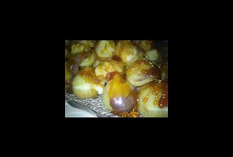 2. Verás que los profiteroles han crecido un poco y se han abombado, trata de buscar algún huequito en cada uno de ellos y por ahi “inyectas” la crema pastelera que habrás metido en una manga pastelera, también puedes abrirlos un poco por la mitad y rellenas. Si usas dos sabores de crema pastelera, trata de preparar la mitad de vainilla y la otra mitad de chocolate.