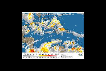 Por tales causas, la Oficina Nacional de Meteorología pronostica aguaceros y tronadas esta tarde y la noche, para las regiones Noreste, Noroeste, Sureste, Cordillera Central y Zona Fronteriza.