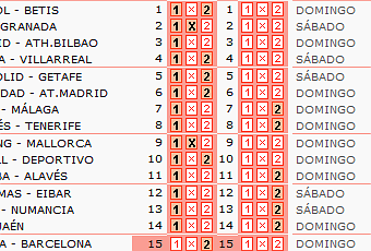 1. Espanyol-Betis……………….1/2: Este es un partidazo. Aunque el Espanyol, sólido en defensa y efectivo en ataque, derrotó ampliamente al Valencia en Cornellà no creo que sea excesivamente superior al conjunto sevillano, que ha perdido por contra sus dos partidos disputados. Es un partido de triple pero creo que aquí el 2 es una variante muy probable antes que la X si los pericos no ganan. El Betis vendrá de jugar su partido intersemanal europeo pero el alta de Rubén Castro es una buenísima noticia para Pepe Mel, que sin duda le aporta a su equipo mucha más calidad y gol.