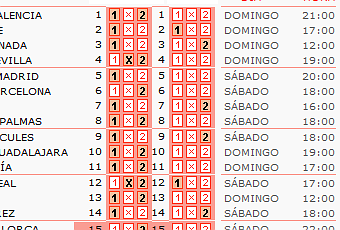 13.Elche-Girona………………………….1/2: Partidazo entre primer y segundo clasificado. Triple de libro aquí también, aunque al Elche el empate no le suponga un verdadero problema y hayan mostrado alguna debilidad en esta segunda vuelta en su estadio, sigue siendo un equipo infalible como local. El Girona daría un golpe de efecto ganando, ellos saben que su perseguidor inmediato, el Alcorcón, juega en su estadio ante el defenestrado Xerez y sumará los tres puntos con casi total seguridad. Sólo la victoria les garantiza la plaza de ascenso directo y tienen equipo para conseguirla incluso contra el líder.