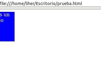 Si os fijáis bien en la imagen y la comparamos con la anterior podemos ver dos diferencias. La primera diferencia que se aprecia a simple vista y es que ahora el texto no esta pegado al borde, hay una separación que es la que hemos indicado en la propiedad “padding“. La otra diferencia es el tamaño de la capa “cuadro”, ahora es mas grande que antes y no hemos modificado su tamaño en el “width” ni en el “height”, esto es debido a que la propiedad “padding” nos deja el espacio entre el texto y el borde pero ese espacio se lo añade al tamaño de la capa. Esto me da pie a la explicación siguiente.
