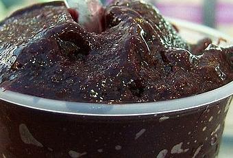 El Acai es un fruto carnoso con algo más de un centímetro de diámetro, parecido a la uva, con una semilla dentro, es de color morado oscuro con una piel grisácea y es un sabor muy peculiar porque tiene un toque ácido y amargo. Se suele utilizar en bebidas, postres y helados.