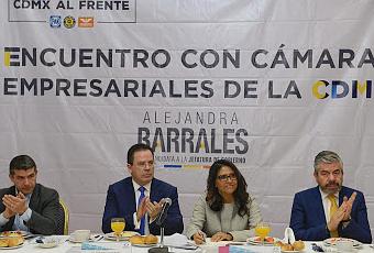 Para impulsar la competitividad y desarrollo económico local, Alejandra Barrales Magdaleno, precandidata de la Coalición ‘Por la CDMX al Frente’ a la jefatura de gobierno propuso al sector empresarial construir conjuntamente el Plan Maestro para la CDMX.Acompañada por los presidentes locales del PAN, Mauricio Tabe Echartea; del PRD, Raúl Flores García y Movimiento Ciudadano, Octavio Rivero Villaseñor; Barrales Magdaleno dijo que se trata de conformar un gran acuerdo entre empresarios y autoridades para promover empleos, la economía de la ciudad y recuperar la paz del país desde la ciudad.En conferencia de prensa celebrada en la sede de la Canaco CDMX, la precandidata al gobierno de la ciudad asumió el compromiso con el sector empresarial para trabajar juntos en la construcción en una agenda común que resuelva la demanda de seguridad y brinde certeza a los empresarios.“Mucho de lo que vive la ciudad en gran medida tiene que ver con la problemática de la violencia desbordada en todo el país, esto le pega a la ciudad y tenemos que trabajar para blindarla en dos temas: la recuperación del tejido social y la confianza en la policía”.En representación del sector empresarial, Humberto Lozano Avilés, presidente de la CANACO CDMX entregó a Barrales el documento denominado “Condiciones necesarias para la inversión en la CDMX” en la que se plasman las preocupaciones y propuestas de los empresarios.El documento detalló Lozano, aborda temas de seguridad, informalidad, desregulación, sistema anticorrupción y generación de empleo en la ciudad, pues de lo que se trata es ser partícipes en todos los programas de gobierno para el desarrollo de la capital.Previo a la conferencia de prensa, ante representantes de las cámaras empresariales de la CDMX, Alejandra Barrales dijo que a diferencia de otros proyectos que promueven la visión del pasado como la forma en resolver los problemas del país, la Coalición ‘Por la CDMX al Frente’, representa un proyecto transformador para cambiar de raíz lo que hoy le afecta al país.Expuso que este proyecto incluye la generación de empleos, combatir la inseguridad y violencia con inteligencia y mejor tecnología, dignificar la función policial, pero además actuar con visión social para ofrecer espacios laborales y educativos para los jóvenes y los niños y recuperar con valores el tejido social.En su oportunidad, Mauricio Tabe Echartea, presidente del PANCDMX destacó la urgencia de lograr una agenda común a nivel nacional desde la CDMX de ahí que la Coalición ‘Por la CDMX al Frente’ plantee resolver los principales problemas, dejando de lado las diferencias ideológicas.“En ningún momento pensamos en la complacencia y auto elogios, sino la sensibilidad para establecer un Gobierno de Coalición que resuelva los problemas de la ciudad y llevar a cabo las reformas de la Constitución de la CDMX”.En tanto, Raúl Flores, presidente del PRDCDMX, dijo que la política es llegar a las posibilidades de acuerdo, diálogo y concertación por ello, hoy se requiere hacer una política empresarial con sentido social para resolver los problemas que aquejan a la ciudad.“Ustedes son mujeres y hombres que mueven la economía de la ciudad y del país, concentran la gran actividad, por eso se merecen un proyecto que pueda sacar adelante los puntos que a ustedes les preocupan y llevarnos los puntos que podamos incorporar a nuestra plataforma”.En este encuentro con representantes de las cámaras empresariales de la CDMX estuvieron presentes Miguel Ángel Nogueira, presidente de CANACINTRA; Jesús Padilla Zenteno, presidente de COPARMEX; María José Fernández, presidenta de ADI; Mónica Leñero, presidenta de ANTAD; Eloy Rodríguez Linero, presidente de la Asociación de Hoteles; José Antonio Pérez Cruz, Vicepresidente de CANACOPE; Isaac Nemun, presidente de CANADEVI; Jorge Mijares Rincón, presidente de CANIRAC; Arturo Bautista, presidente de CMIC, así como Félix Villaseñor, presidente del Colegio de Arquitectos. Así como Christian Lujano Nicolás y Héctor Saúl Téllez Hernández, Secretarios General y de Vinculación del PANCDMX, respectivamente.