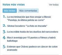 3. Restringir en la categoría más leídas a las notas con mucho texto, o a las mejores producciones periodísticas del medio. De este modo, en primer lugar va a ser verdadero el decir "más leído" y en segundo lugar, los lectores van a valorar lo mejor de lo mejor que genera ese medio. De ese modo se logrará promocionar más esos buenos artículos, por el lugar estratégico de la home que ocupa el menú "Más leídos". Y también para sincerar el asunto, porque realmente a los periodistas y personal de los diarios les interesa más qué contenido trabajado fue el más leído, al igual que los lectores.