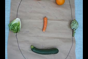 Después, hemos realizado nuestro retrato con recortes de frutas y verduras.