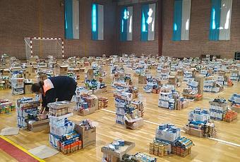 El pabellón José Arroyo del barrio ponferradino de Flores del Sil ya está habilitado para que las familiasque estén dentro del programa de alimentos del Cáritas, reciban sus ayudas en este estado de alarma provocado por la crisis del Coronavirus.